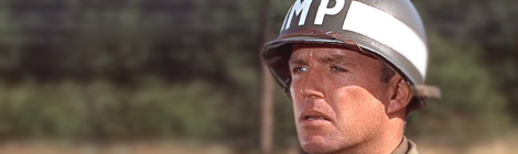 First seen in full Garrison uniform, pistol belt, sidearm and white MP helmet liner. Jaeckel’s Sgt. Bowren brooks little nonsense when lining up twelve diverse convicts for his new boss, Major Reisman (Lee Marvin). Then introducing the good Major to each after the twelve have dressed and covered according to height. Reading names and sentences that range from decades of hard labor to death by hanging. After a failed attempt at close order drill, caused by upstart Victor Franko (John Cassavetes) and an appropriate thumping by the Major. The remainder show a renewed attention to commands. Giving the first glimmers of light to the possibility that the Major may just be able to pull this cockamamie idea off.