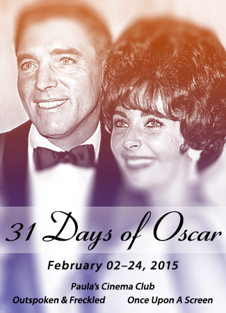 31-Days-2015-01We started this event to coincide with Turner Classic Movies’ 31 Days of Oscar marathon, during which the network shines the spotlight on the storied history of the Academy Awards. This February promises to be another stellar month for TCM, filled with many of the stories, players and films we love. The network is kicking things off this year in spectacular style on February 1st with a prime time lineup dedicated to The History of the Oscars, including the 2014 documentary And The Oscar Goes To…