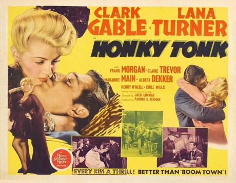I always wish that SUTS days were in chronological order, and Lana Turner is Exhibit A, Your Honor. In the first film where she was given top billing, new-to-me Honky Tonk (1941), Turner was 20 years old and reportedly flustered by leading man Clark Gable, who was twice her age, causing her to make mistakes, though it didn’t show in the finished film. There are wild shifts in tone though, as Honky Tonk bends genres at will, sometimes in the same scene. It’s a historical western comedy drama romance directed by Jack Conway (Lady of the Tropics, Boom Town, Love Crazy) and it co-stars Frank Morgan, Claire Trevor, Marjorie Main, and Chill Wills. Despite all that’s going on as Gable’s con man takes over an Old West town, falls in love with the judge’s daughter (Turner), and tries to keep the townsfolk happy — it… d r a g g e d. Even Marjorie Main couldn’t save it. Honky Tonk was the first of four Turner-Gable vehicles. MGM immediately re-teamed them for Somewhere I’ll Find You (1942). They also made Homecoming (1948) and Betrayed (1954), which screens on Clark Gable Day, Sunday, August 10, at 2:15 a.m.