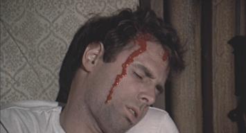 Marnie sees red and panics. As she struggles to remember the events of a long-repressed night from her childhood, we see Marnie as a child awakened from a deep sleep and sent to the sofa while her mother uses the bed for ‘business.’ A storm rages outside and thunder frightens the sleeping child. Mom’s client, a sailor, tries to comfort Marnie but the child resists him. She wants her mommy who enters and pushes the man away from her girl. A fight breaks out and Mom falls, hurting herself. In an attempt to help her mother, Marnie grabs a poker from the fireplace and beats Bruce Dern to death. Marnie (1964)