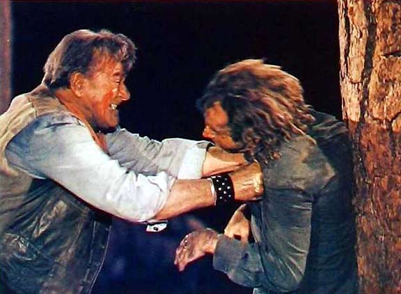 In Roger Corman’s The Wild Angels (1966), he and fellow Hell’s Angel Peter Fonda, clad in swastikas and other Nazi insignia, threaten veteran Dick Miller with a pair of pliers. In his most infamous role, Long Hair in The Cowboys, Bruce Dern shoots John Wayne in the back, killing him. When they discussed that scene John Wayne told Dern, “America will hate you for this.” Dern replied, “Yeah, but they’ll love me in Berkeley.”