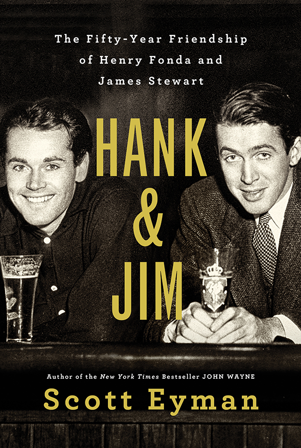 As a classic movie devotee, I’ve always wondered how two so different people as Henry Fonda and Jimmy Stewart — somehow he is never “James” — could maintain such a lasting and close friendship as theirs apparently was. I’d heard about the model airplane they built together, and the double dates. Yet Fonda was a New Deal Democrat who was married 5 times, had issues with his kids, and seemed to keep to himself; Stewart was a conservative Republican, got married once for life, had a decent relationship with his kids, and seemed to know everybody. The new double biography Hank and Jim: The Fifty-Year Friendship of Henry Fonda and James Stewart, by Scott Eyman, acclaimed author of John Wayne: The Life and Legend, reconciles this conundrum, and in the process reveals that these two actors were more alike than I knew. Giveaway winner announced after the jump.